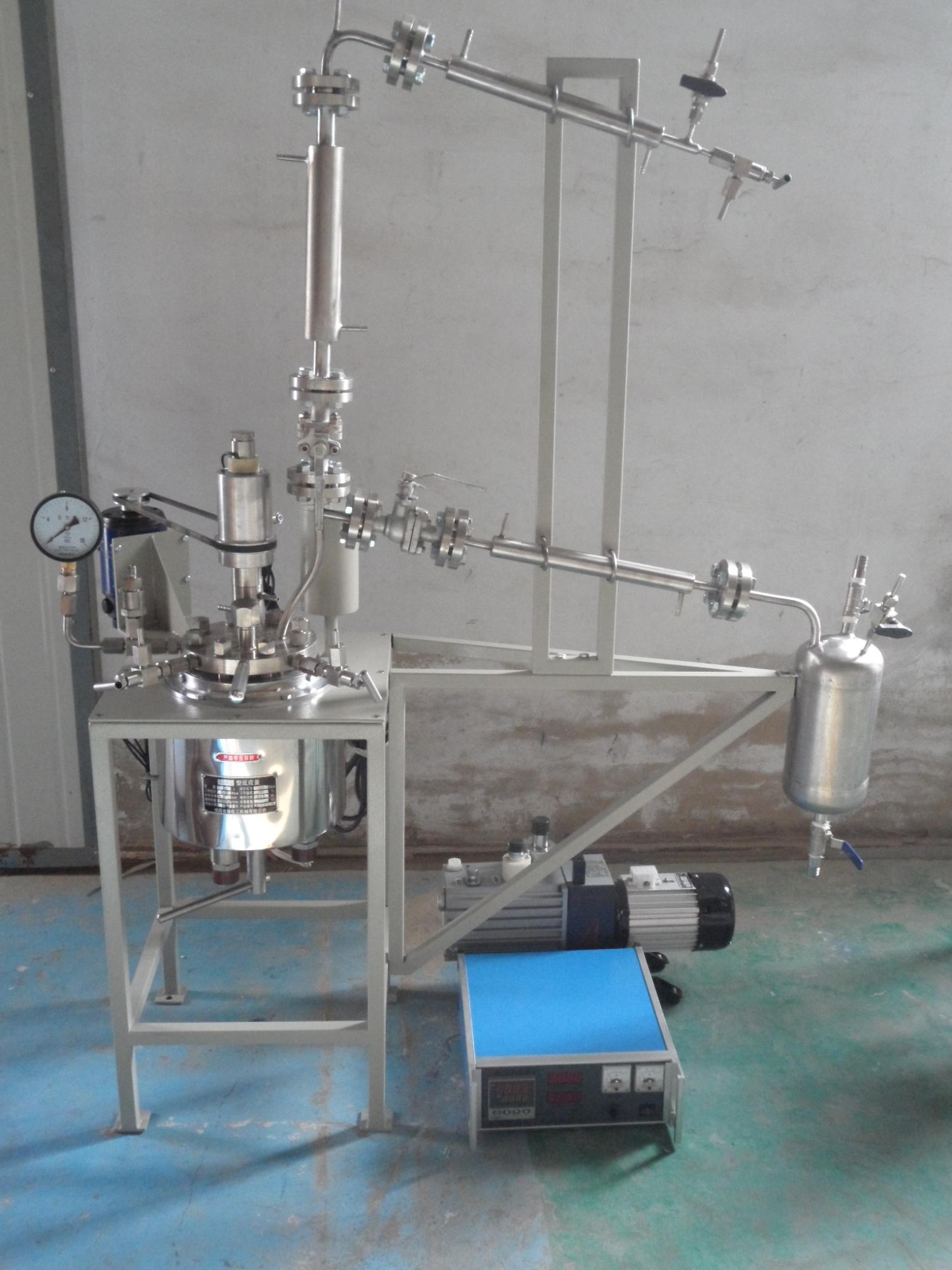 不銹鋼酯化縮聚反應釜技術(shù)條件:容積0.5L,工作壓力-0.1-0.6Mpa,工作溫度:室溫~280℃、電加熱,加熱功率1.5KW,攪拌轉(zhuǎn)速0-750r/min可調(diào),電機功率匹配123W,攪拌槳葉為錨式,主體接觸物料的材質(zhì)1Cr18Ni9Ti不銹鋼。釜蓋開口:攪拌口配磁力攪拌器(攪拌軸承采用自潤滑耐磨、耐腐蝕軸套,運轉(zhuǎn)平穩(wěn)、噪音小),加料口配絲堵,上出料口(取樣口)配針形閥帶釜內(nèi)插底管,抽真空口配針形閥,測控溫口配釜內(nèi)保護管及鉑電阻,壓力表安全防爆口配壓力表及安全防爆片,釜內(nèi)冷卻盤管進出口配水咀,下出料口配球閥。配控制儀:配有廈門宇電PID控溫表,控制顯示釜內(nèi)溫度,控溫精度為±1.0℃,無級調(diào)速,配有加熱電壓表、電機電流表、釜內(nèi)攪拌轉(zhuǎn)速顯示表及工作時間顯示。